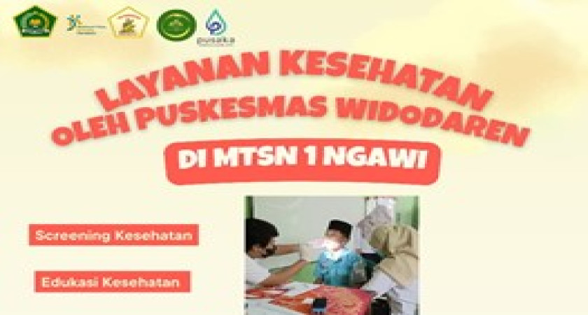 Pada hari Senin tanggal 10 September 2025, Puskesmas Widodaren mengadakan layanan kesehatan di MTsN 1 Ngawi sebagai bagian dari program kerja sama promotif-preventif. Kegiatan ini meliputi pemeriksaan kesehatan dasar (tekanan darah, pemeriksaan gigi, pengukuran tinggi-badan-berat-badan), imunisasi lanjutan, penyuluhan kesehatan remaja tentang gizi dan kebersihan, serta konseling singkat bagi siswa yang membutuhkan.